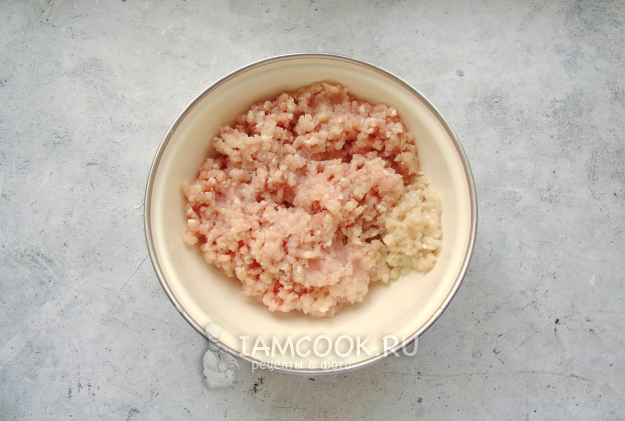 Фарш посолите и поперчите. Очень тщательно перемешайте.
