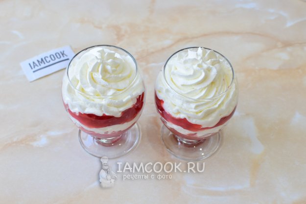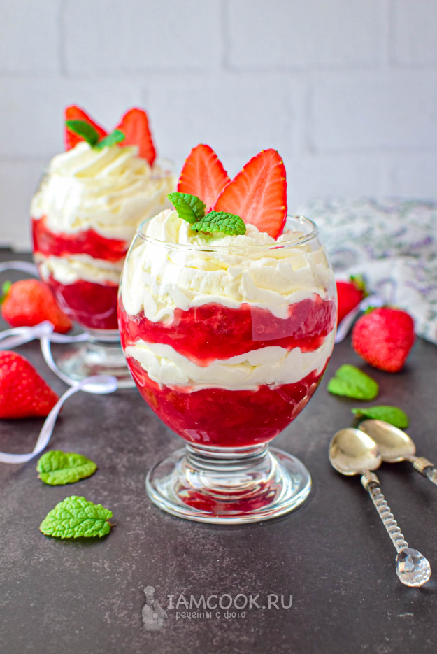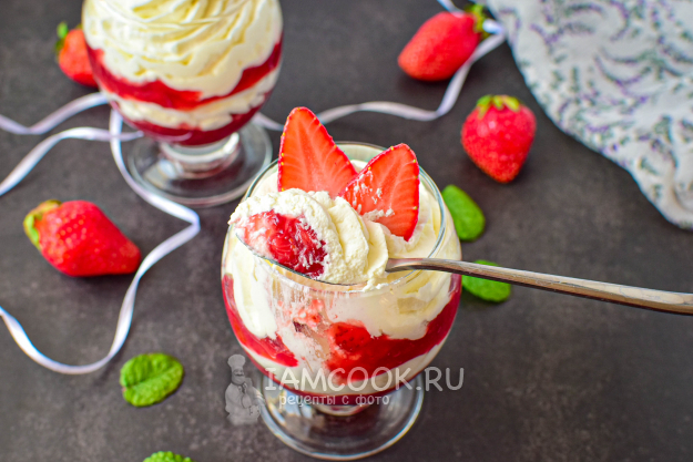 Творожный десерт с клубникой готов к подаче на стол. Приятного угощения!