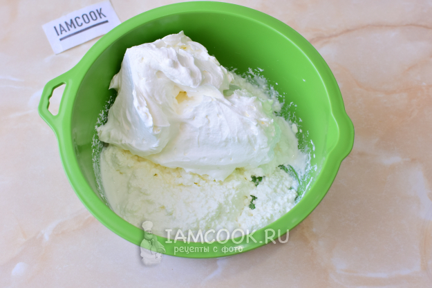 Смешайте взбитые сливки с творогом. Получится нежный творожный крем.