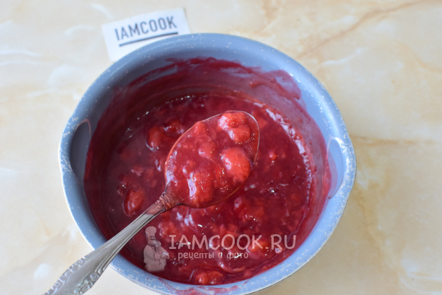 Сначала приготовим клубничную начинку. Нарежьте ягоды на кусочки и смешайте с крахмалом. Добавьте сахар. Если ягоды не сочные, то можно добавить немного воды. Нагревайте до кипения. При этом ягоды пустят сок и масса станет немного гуще. Готовую начинку остудите.