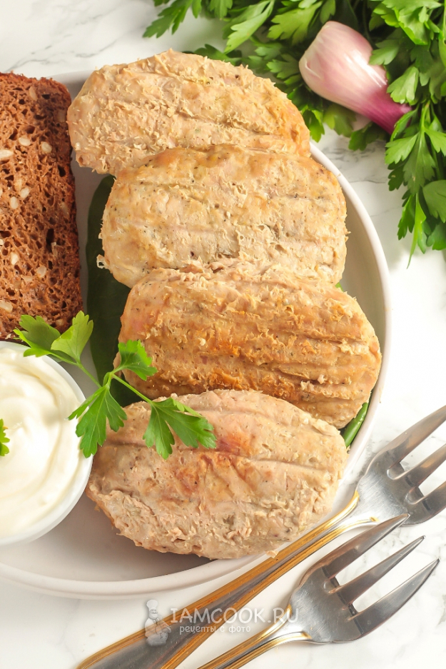 Подайте румяные котлеты с соусом или сметаной, хлебом или другой несладкой выпечкой к столу. Дополните овощным салатом или нарезанными свежими овощами.