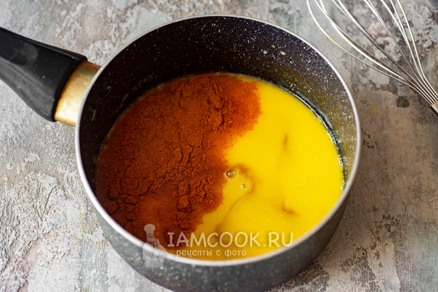 Затем добавим апельсиновую цедру, апельсиновый сок, соевый соус, паприку и соль. Продолжаем варить всё на маленьком огне, активно помешивая эти ингредиенты венчиком.