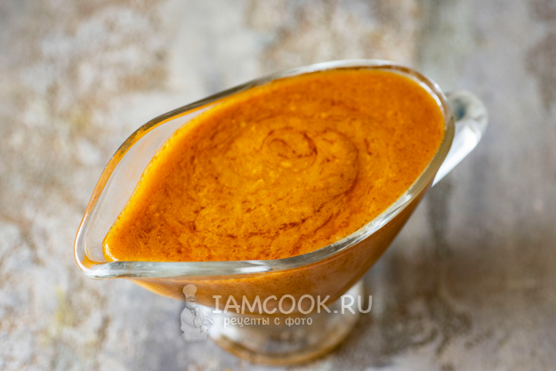 Перельем соус в соусник и оставим охлаждаться. В итоге у вас должен получиться густой, но текучий апельсиновый соус. Густоту соуса можно регулировать добавлением апельсинового сока.