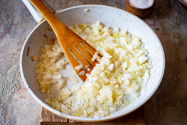 В сковороде разогреем растительное масло и выложим весь измельченный лук, будем пассеровать на среднем огне до мягкости, постоянно помешивая лопаткой.