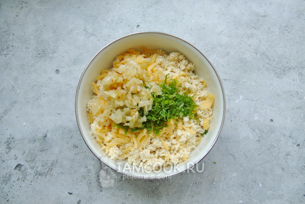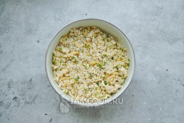 Начинку посолите, поперчите и перемешайте.