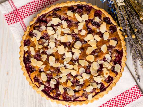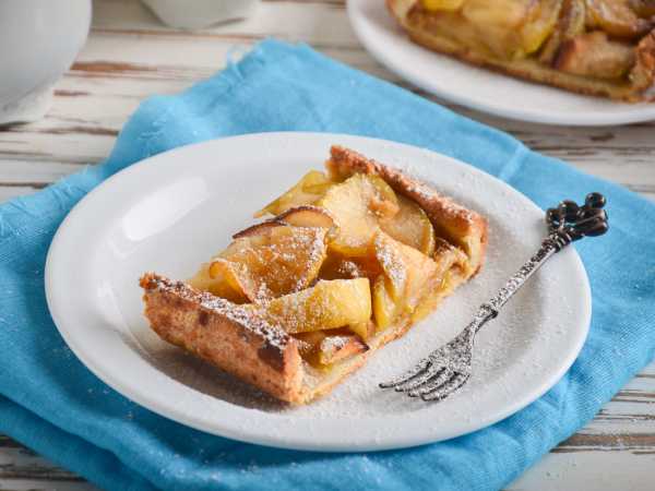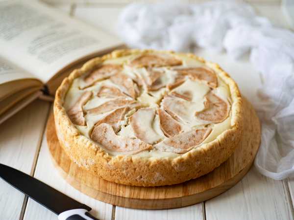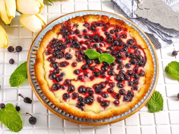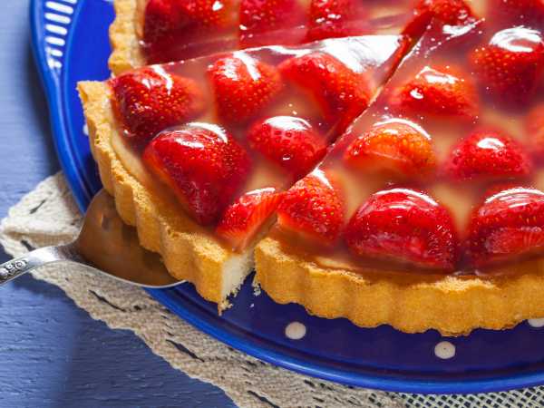 Песочное тесто для тарта нужно раскатать и уложить в форму так, чтобы получились бортики. Толщина теста пусть будет, например, 1 см. На поверхности теста сделайте проколы вилкой.