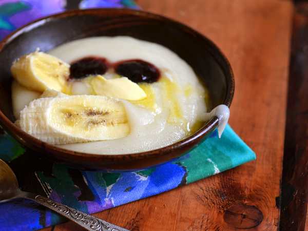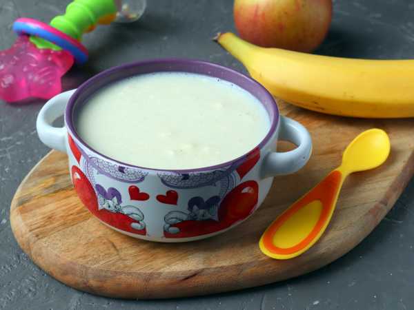 Масло вмешаем в кашу. Дождемся охлаждения манной каши на смеси до температуры в 37 градусов, приступим к кормлению.