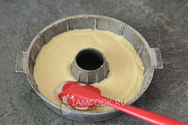 Смажьте маслом форму и выложите тесто, разровняйте его лопаткой.