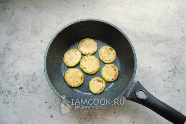 Обжаривайте кабачки до румяной корочки на сковороде с небольшим количеством растительного масла.