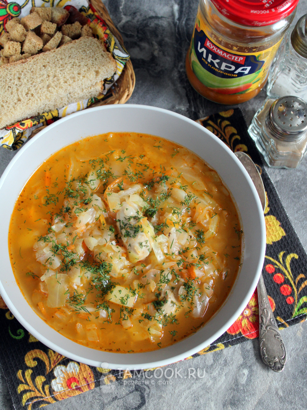 Добавьте в суп кабачковую икру и сухие ароматные травы.