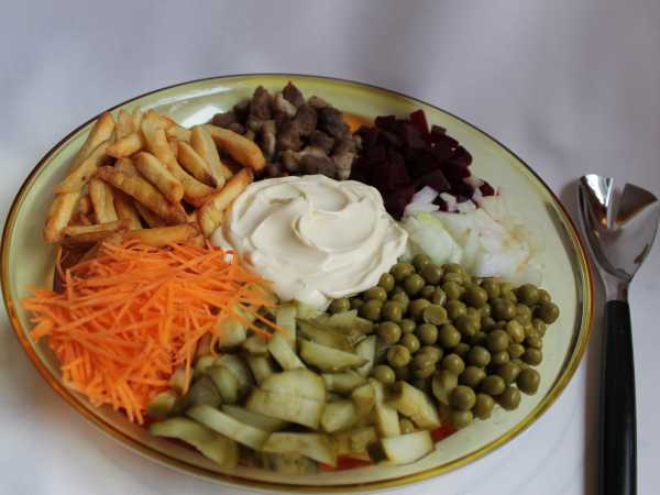 Отваренную свеклу почистим и нашинкуем брусочками.