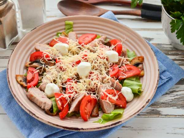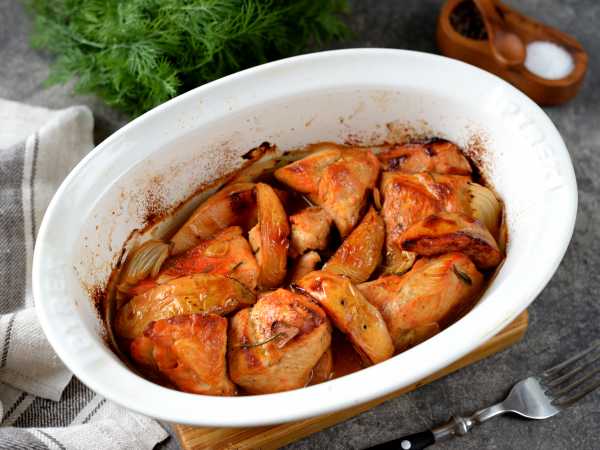 Поверх выложим кусочки индейки.