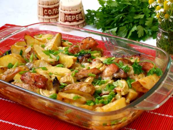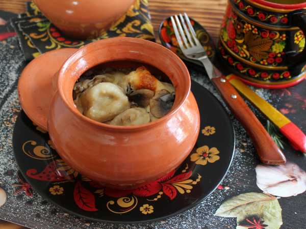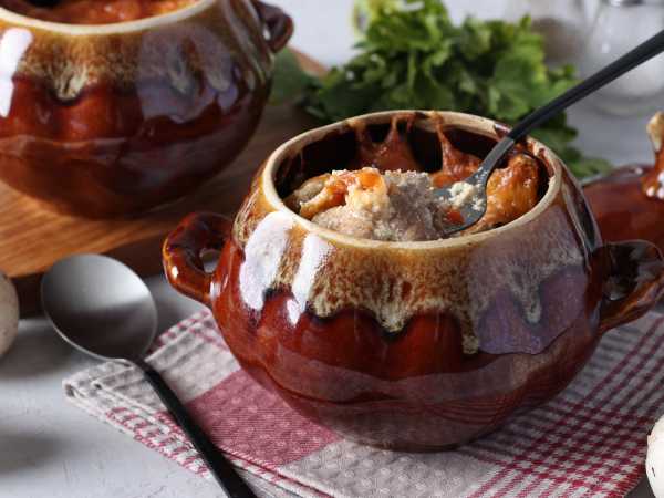 На дно горшочка для запекания выложим луково-грибную массу со сковороды.
