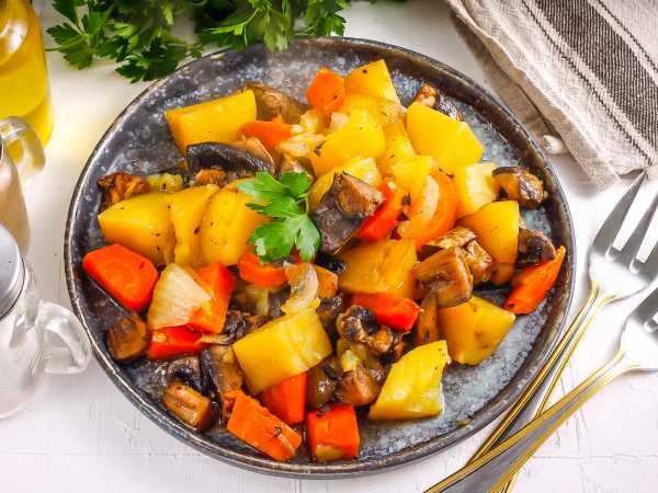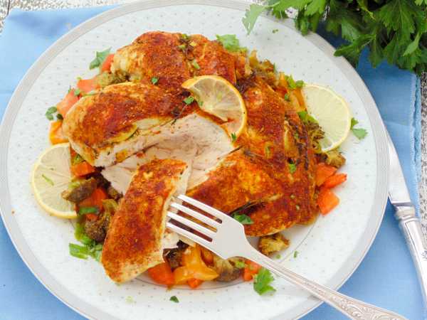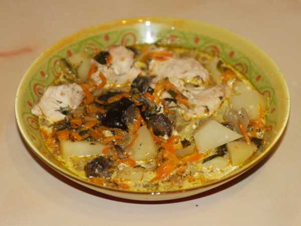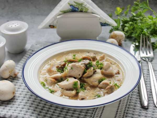 Готовая индейка с грибами подается к столу в горячем виде. Приятного аппетита!