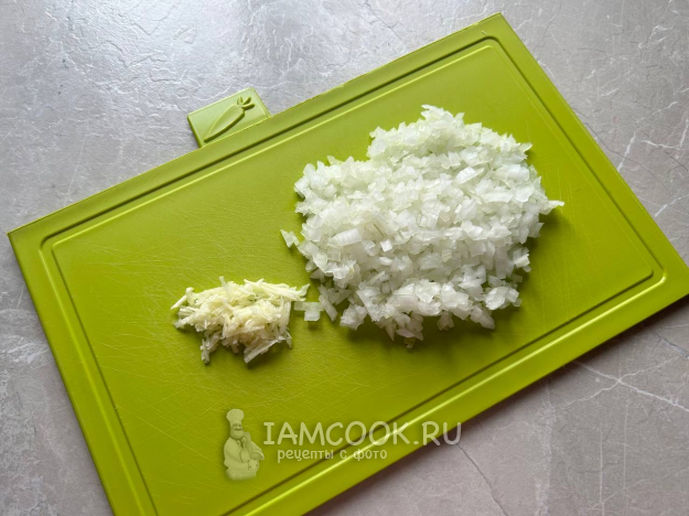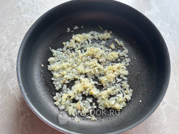 Обжариваем лук с чесноком на масле до золотистости. Обжаривать можно на любом растительном или сливочном масле. Я обжаривала на масле гхи.