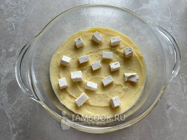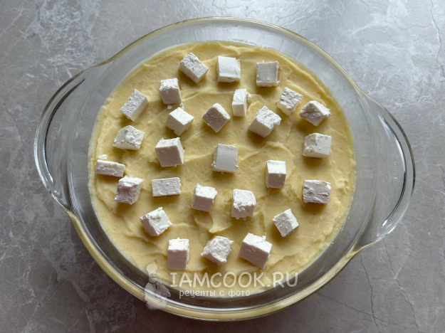 Сверху раскладываем брынзу. Ставим выпекаться в духовку на 30 минут. После этого Аши по-гречески можно пробовать.