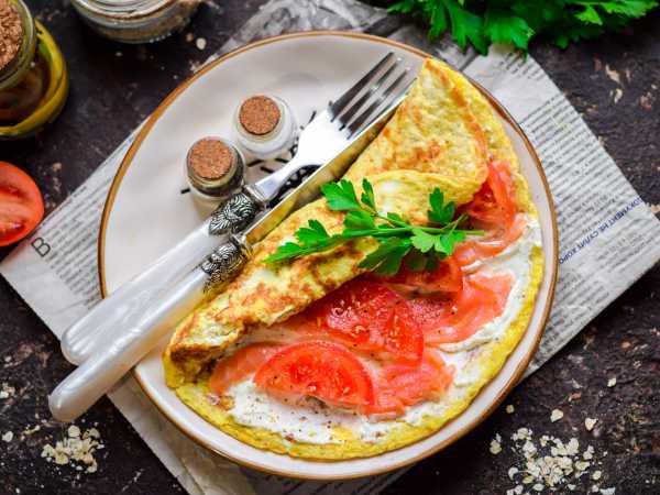 Соберите ингредиенты для приготовления блинного торта с семгой и творожным сыром.