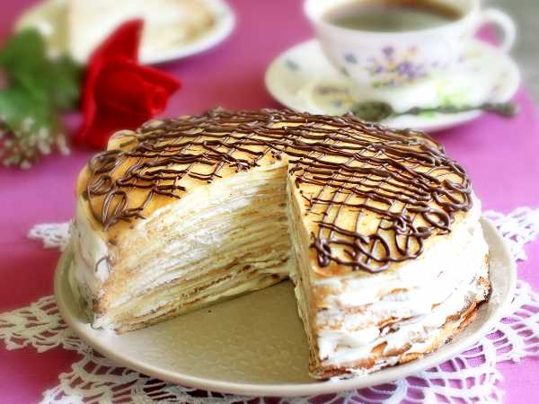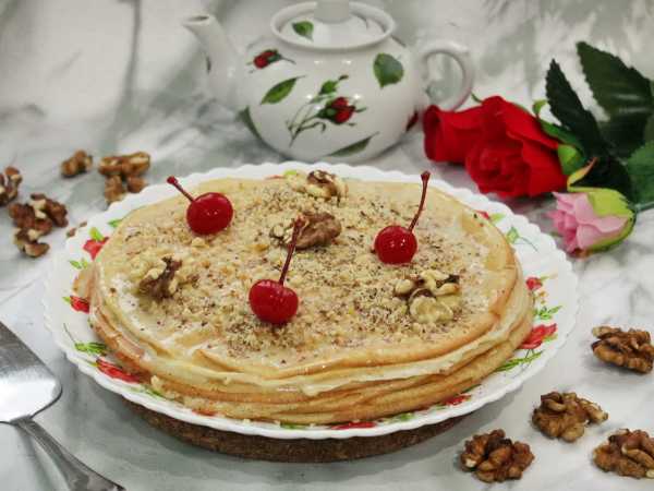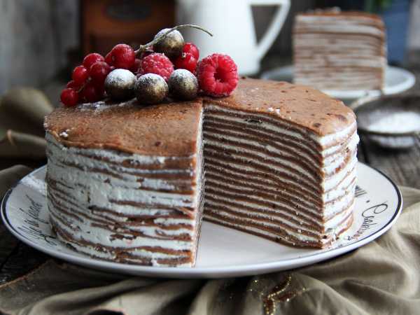 Украшать блинный торт нужно перед подачей. Украшение делайте на свой вкус.