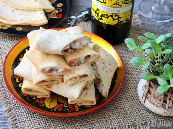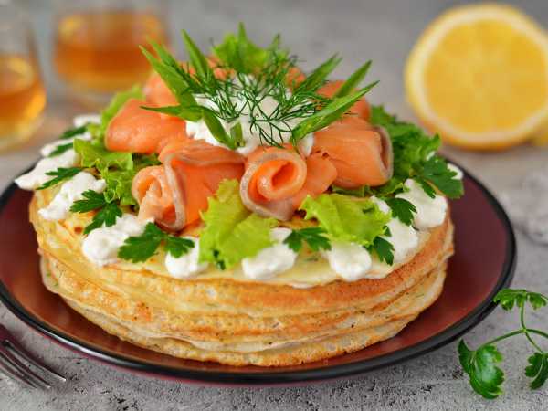 Блинный торт с семгой и творожным сыром готов. Он явно будет королём стола!