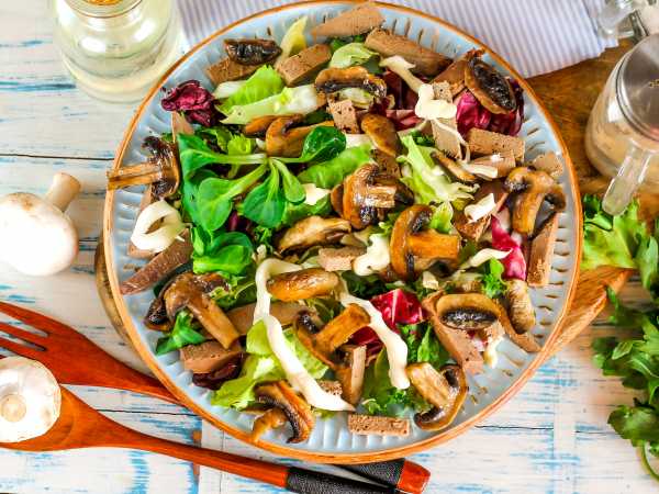 Шампиньоны нарезать на 4 части. Если мелкие, то на две.