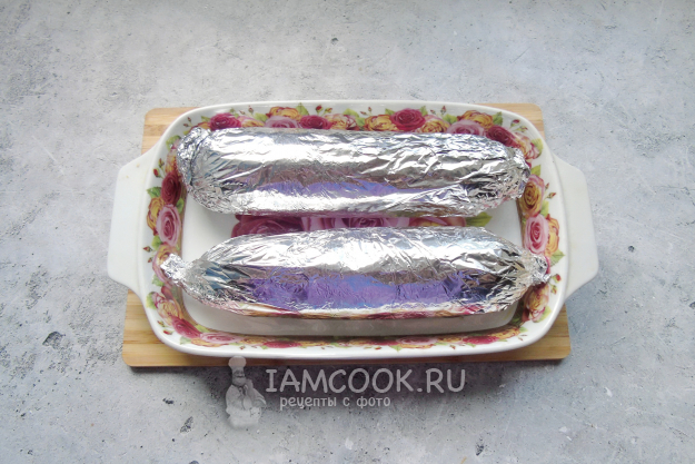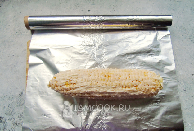 Плотно заверните кукурузу в фольгу и выложите в форму для запекания.