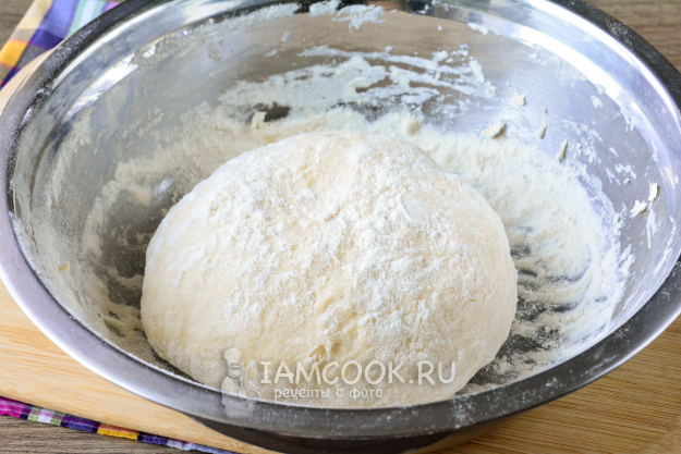 Замесите тесто и скатайте его в шар. Слегка присыпьте мукой и прикройте сухим хлопковым полотенцем, дайте тесту отдохнуть 20 минут.