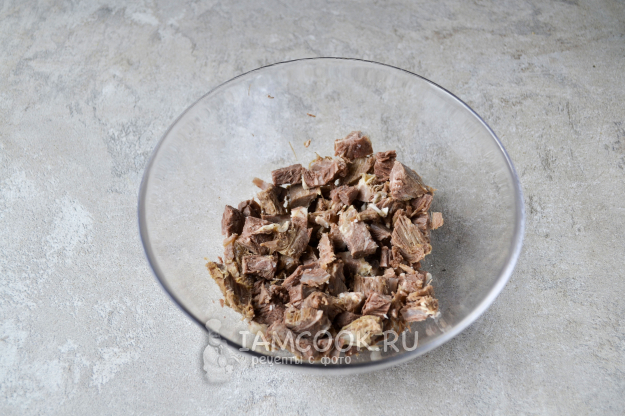 Добавьте к говядине нарезанный кубиками твердый сыр.