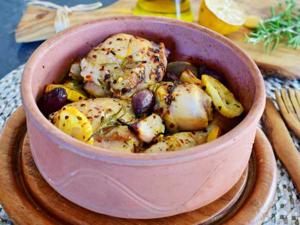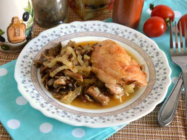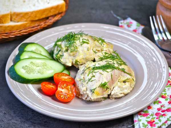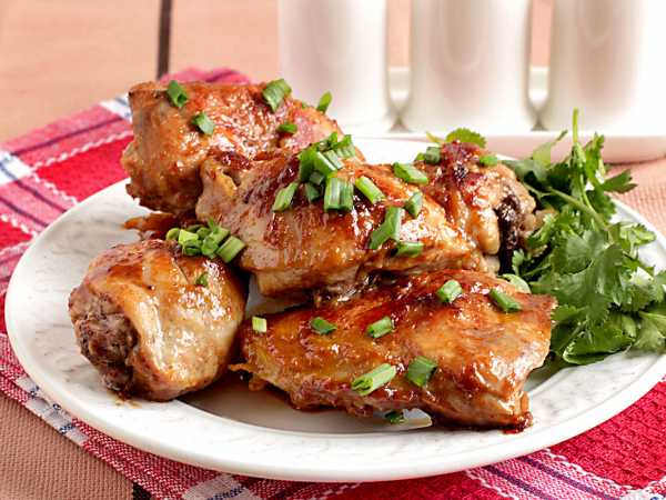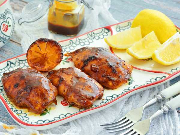 Выложите курицу в форму для запекания. Хорошо смажьте со всех сторон маринадом. Дайте постоять час.