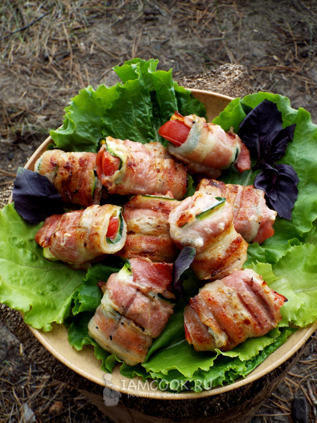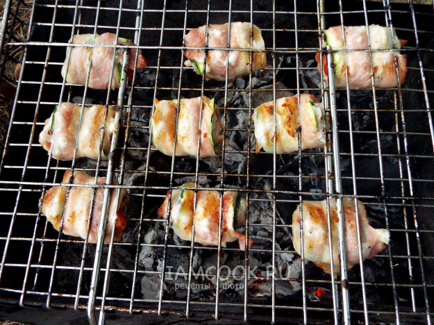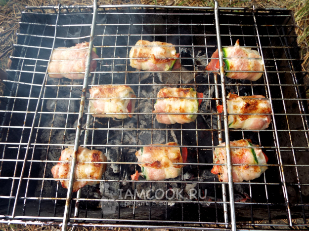 Сочные и ароматные кабачки с беконом на мангале удались!