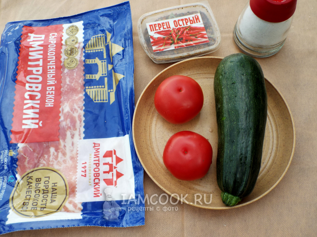 Продукты для приготовления рулетиков из кабачков с беконом на мангале - перед вами.