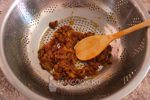Косточки с остатками мякоти размешайте во второй порции воды и процедите.