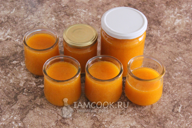 Разлейте полученную золотистую пюреобразную массу по подготовленным банкам и закройте крышками.