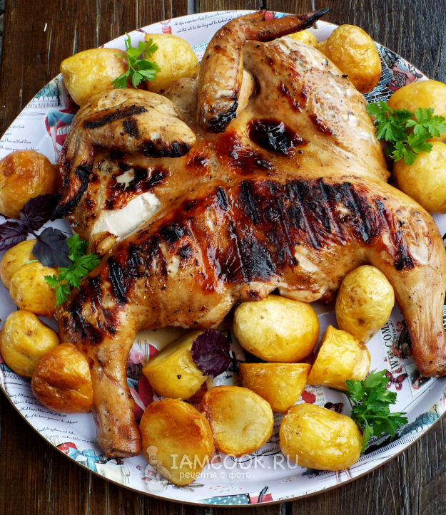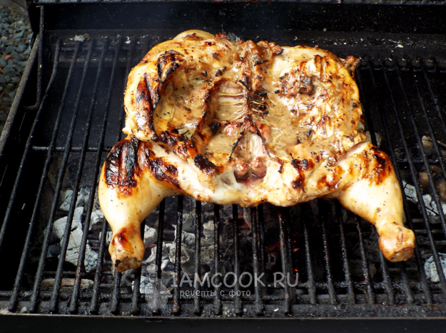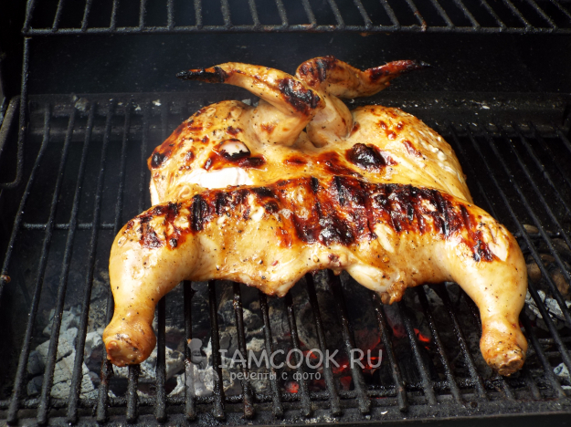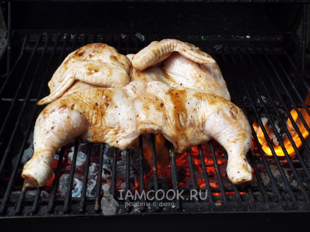 Жарить курицу терияки на мангале на умеренном жаре.