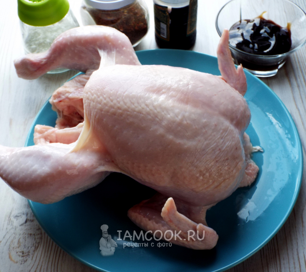 Тушку курицы хорошенько вымыть, обсушить салфеткой.