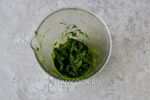 Погружным блендером измельчите продукты до однородной кашицы.