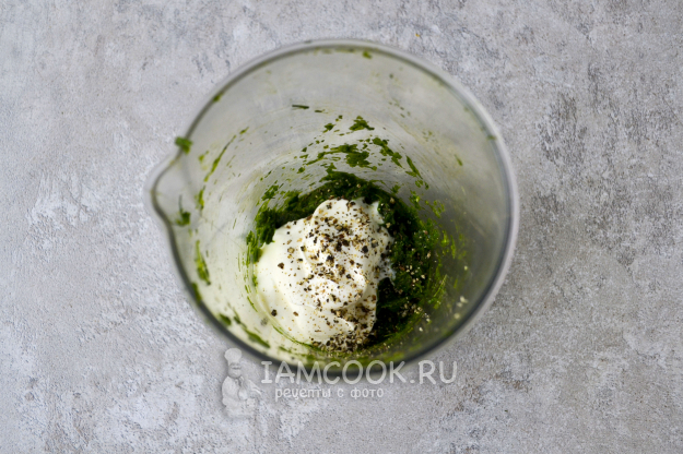 Добавьте в стакан сметану и черный молотый перец.