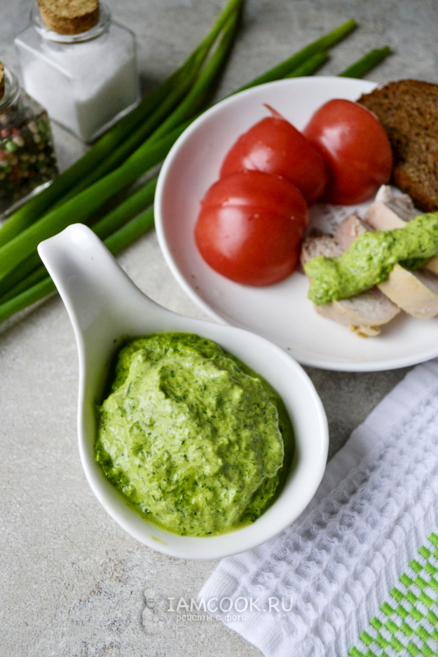 Подавайте зеленый соус к мясу, курице, свежим овощам.
