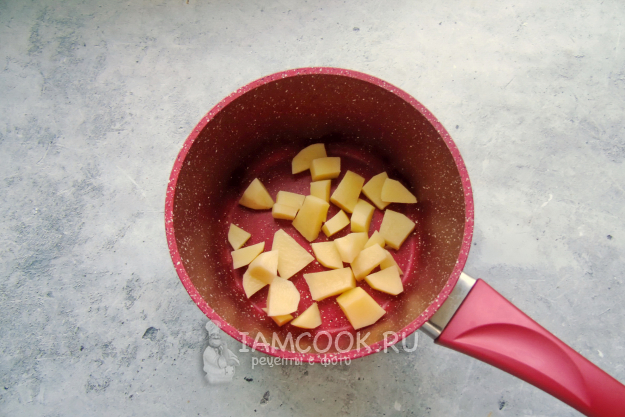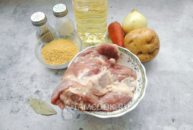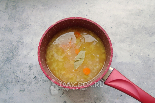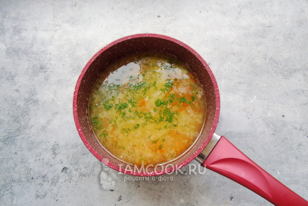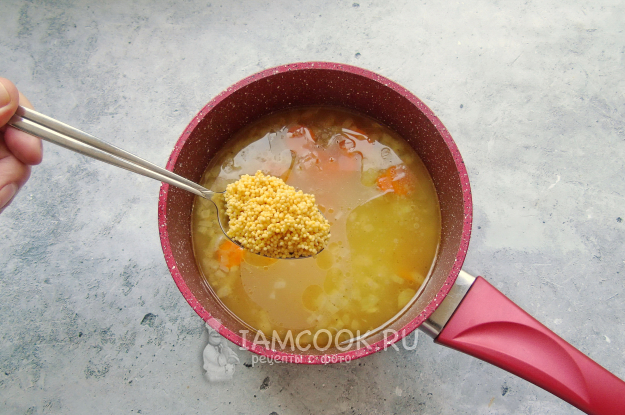 Варите овощи до полуготовности. Затем добавьте пшено, которое предварительно помойте. Посолите и поперчите суп.