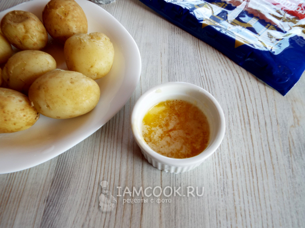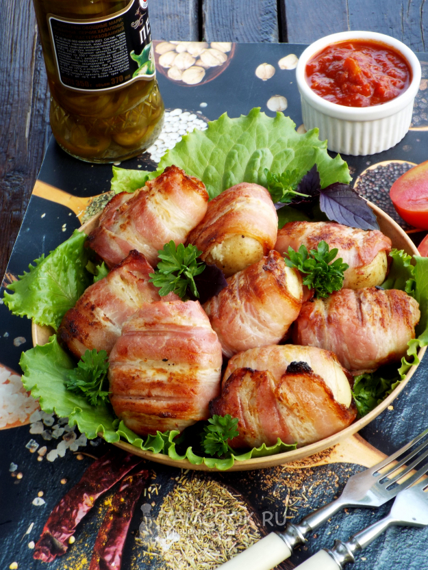 Картошка с беконом на мангале на решетке готовится из таких ингредиентов.