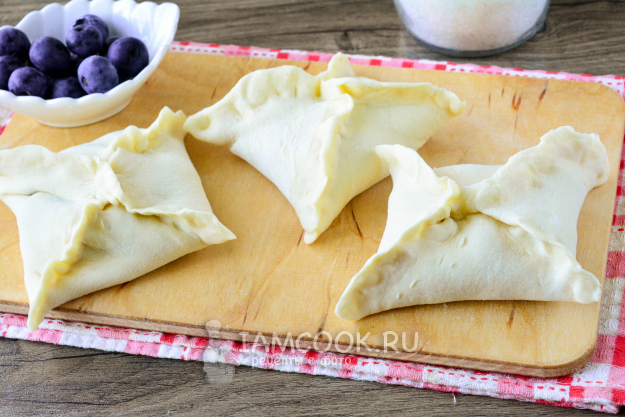 Защипните края теста, соединяя противоположные части. Таким образом приготовьте все слойки.