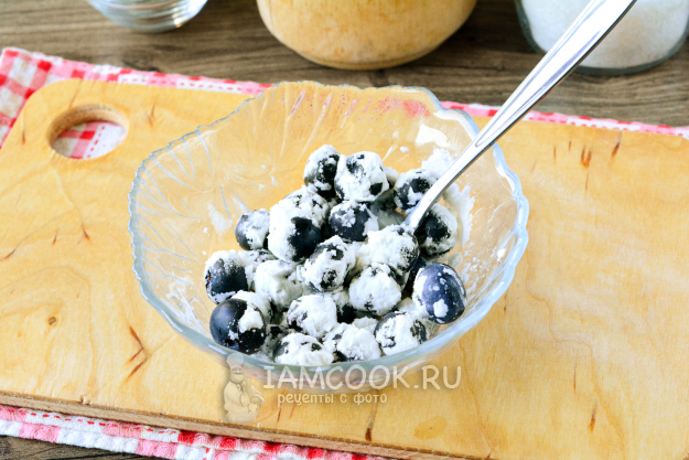 Свежую голубику промойте и высушите на салфетке, затем ягоды перемешайте с крахмалом. Он будет собирать весь сок, который выделится из ягод в процессе выпечки.
