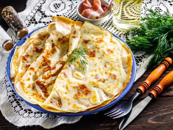 Пеките блины с обеих сторон до легкого золотистого цвета.
