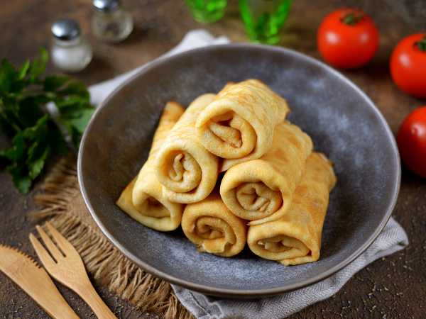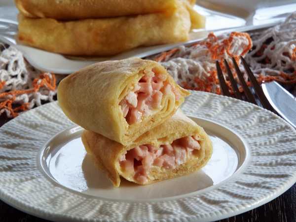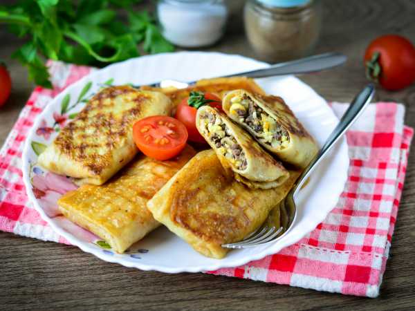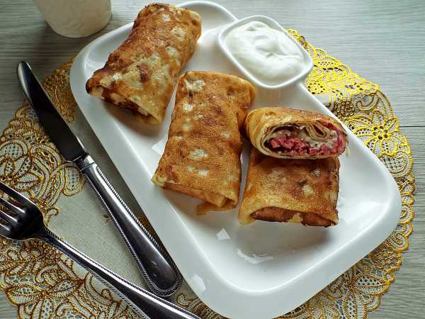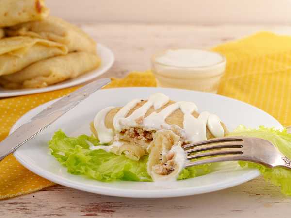Перед подачей обжарьте блинчики на сковороде. Блины с индейкой готовы.