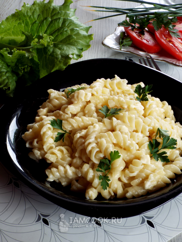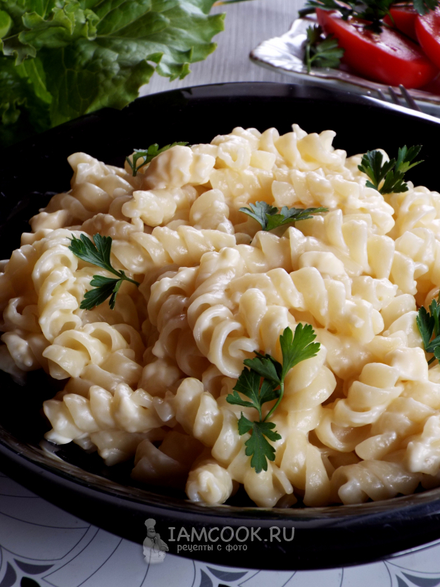 Я взяла плавленый сырок, потому что он отлично тает и обволакивает макарошки. Можно использовать любой другой сыр.