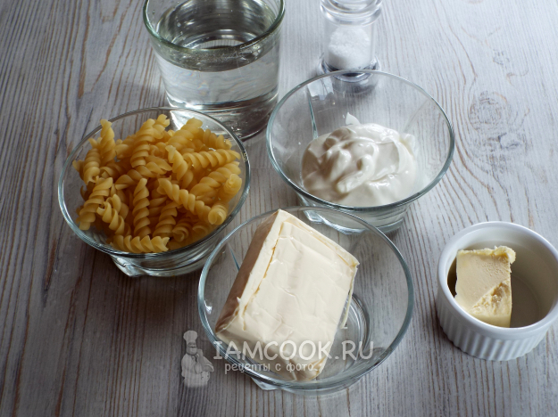 Макароны со сметаной и сыром на сковороде готовим из таких ингредиентов.