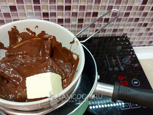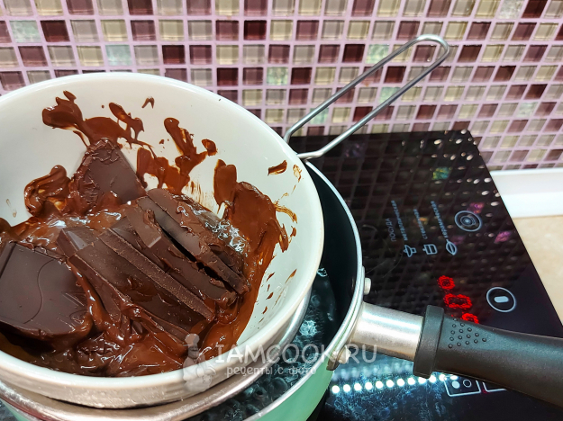 Для третьего слоя надо растопить шоколад на водяной бане, периодически перемешивая.