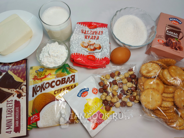 В качестве основы подойдёт несладкий крекер. Если его не нашлось и печенье сладкое, сахара кладите меньше.