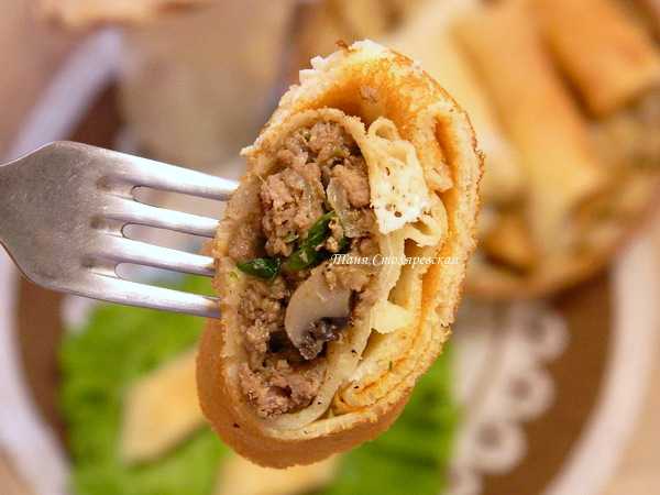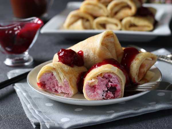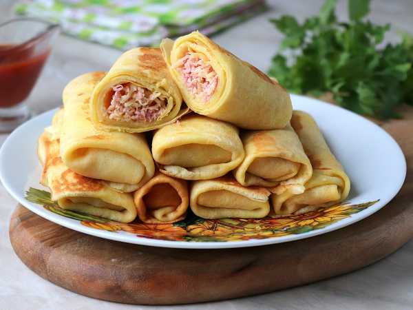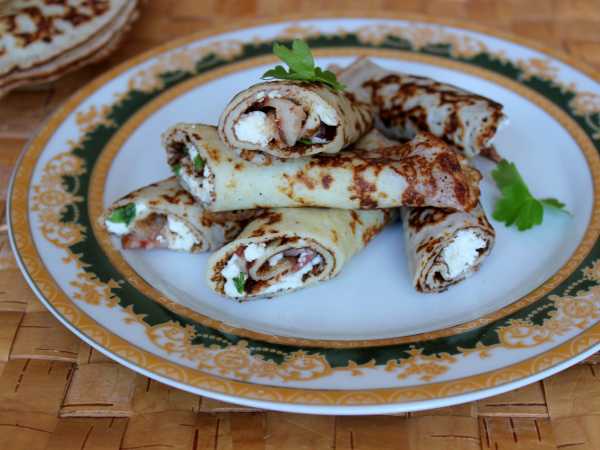Сверните блинчик трубочкой. Нафаршируйте блины, используя всю сырную массу.