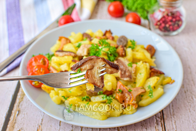 Жареная картошка с лесными грибами и луком готова! Сразу же в горячем виде подавайте к столу.