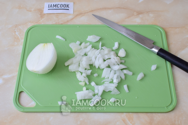 Очистите лук и мелко его нарежьте.